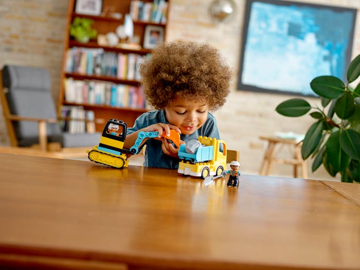 Bạn đang tìm một bộ lắp ráp LEGO® nhỏ? Bộ xe tải và máy xúc bánh xích LEGO® DUPLO® sẽ khơi dậy trí tò mò và sự sáng tạo của con bạn thông qua trò chơi mở.